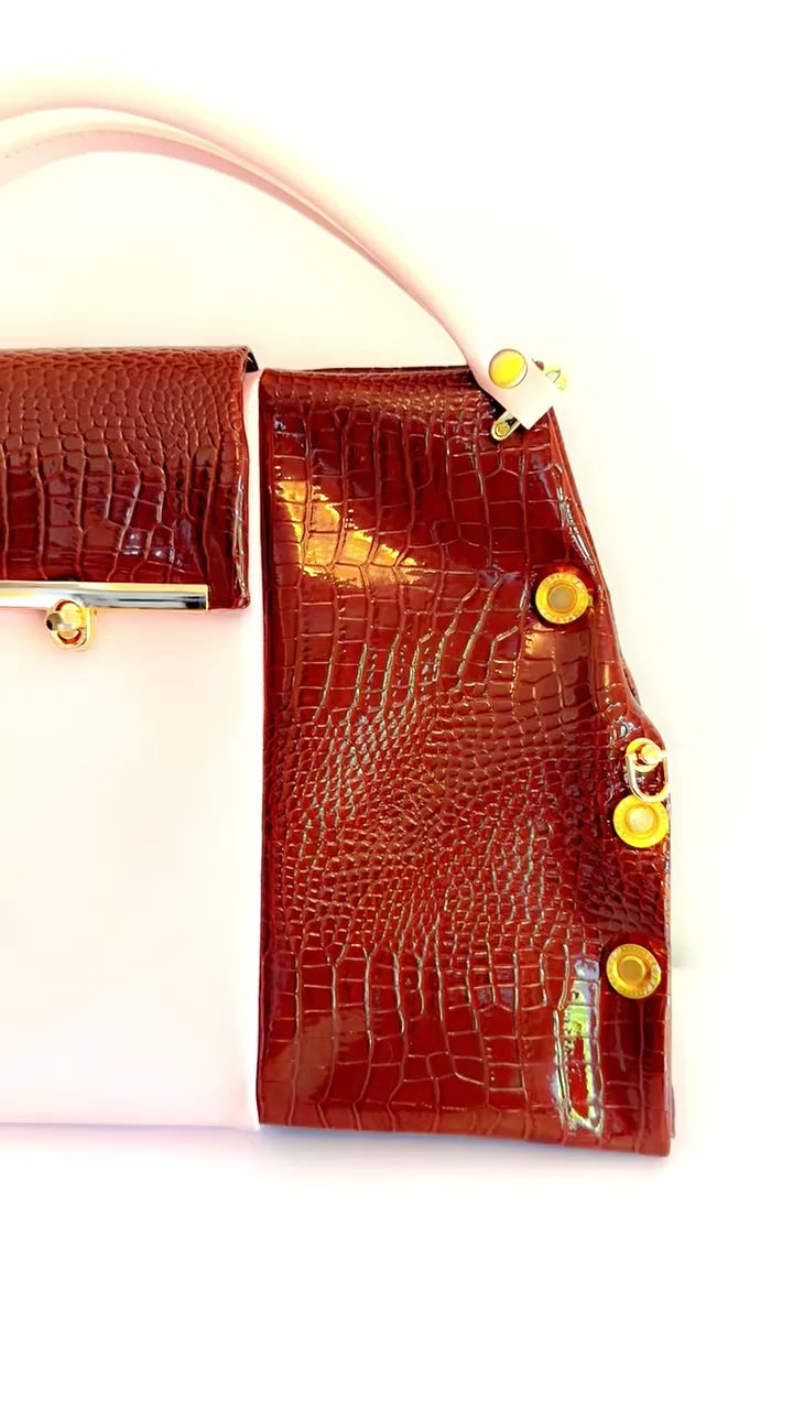 Blush and Chocolate Patent Leather Handbag