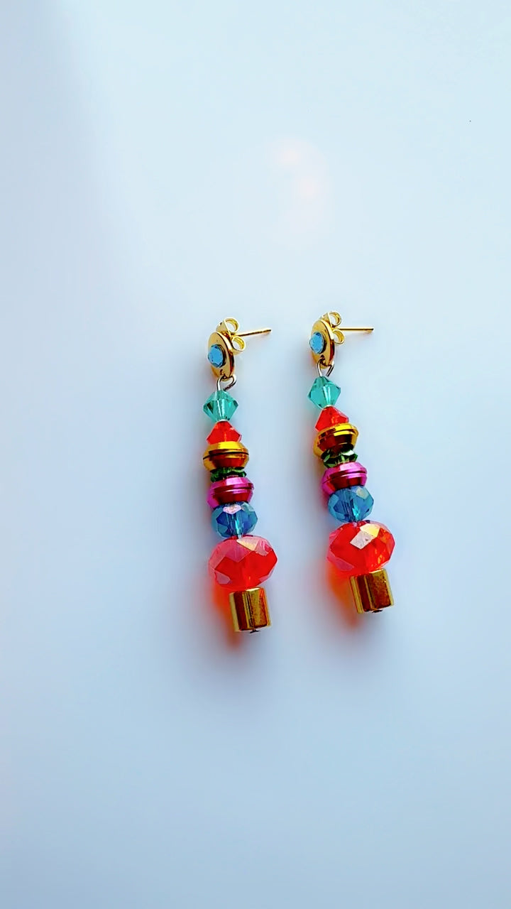 Colorful Preciosa Crystal and chrome washer earrings with gold post and blue crystal detailing…perfect with any color top and jeans! Looks amazing with gold and white.