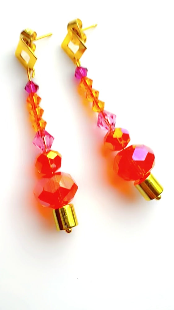 Geo Genie Bottle Pink Crystal Drop Earrings