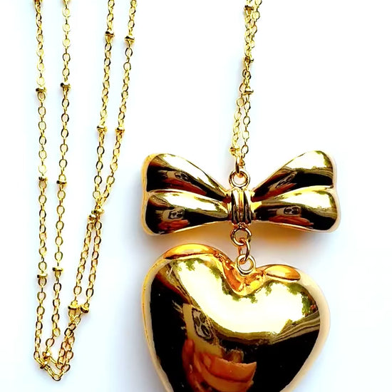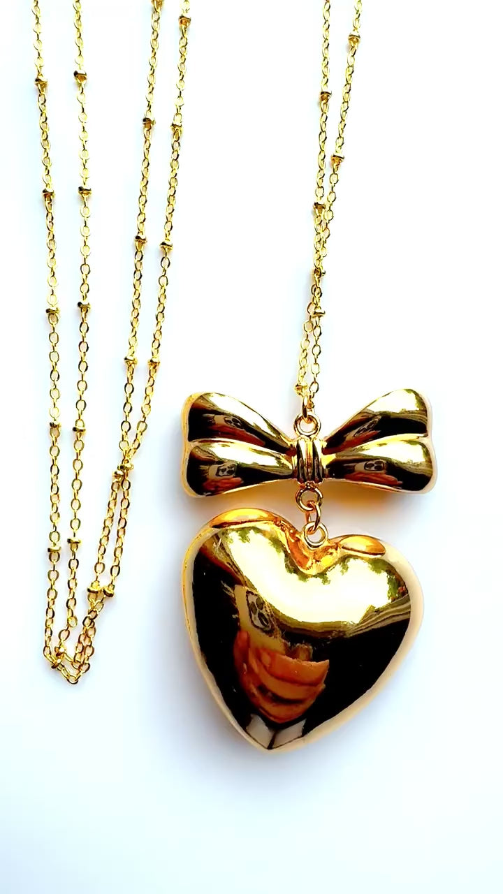 Stainless Steele Gold Chain with Large Heart Pendant with bow….