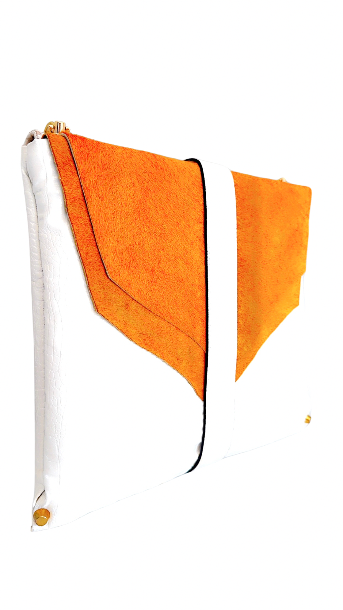 Handmade White Gold and Mustard Vinyl Handbag with gold hardware and Hyde leather detail. Perfect travel bag for your personal screens.