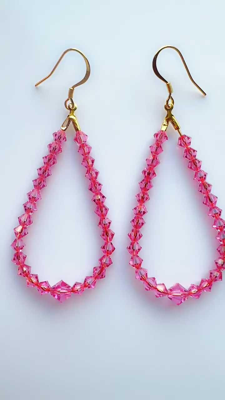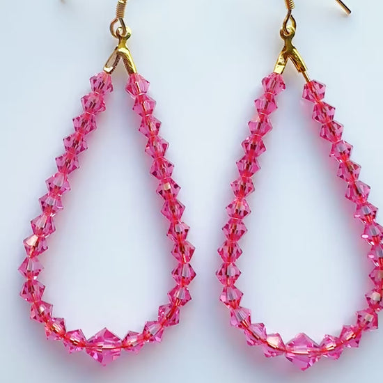 Pink Preciosa Crystal earrings on goldtone long hoop with gold hook