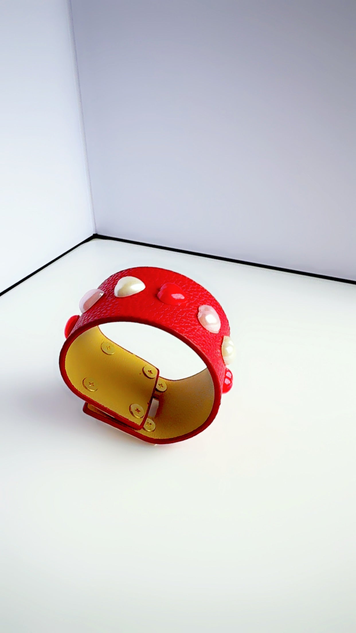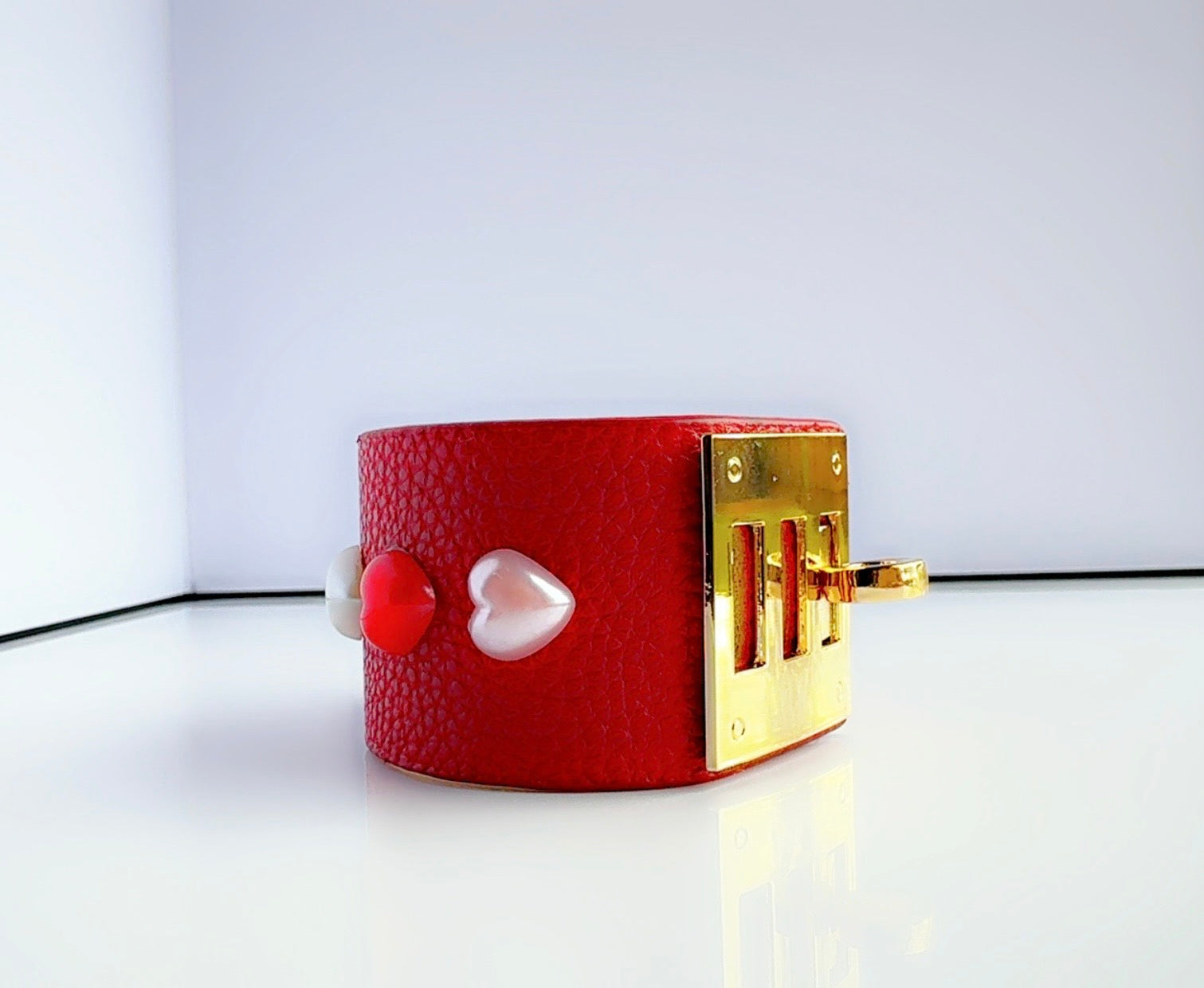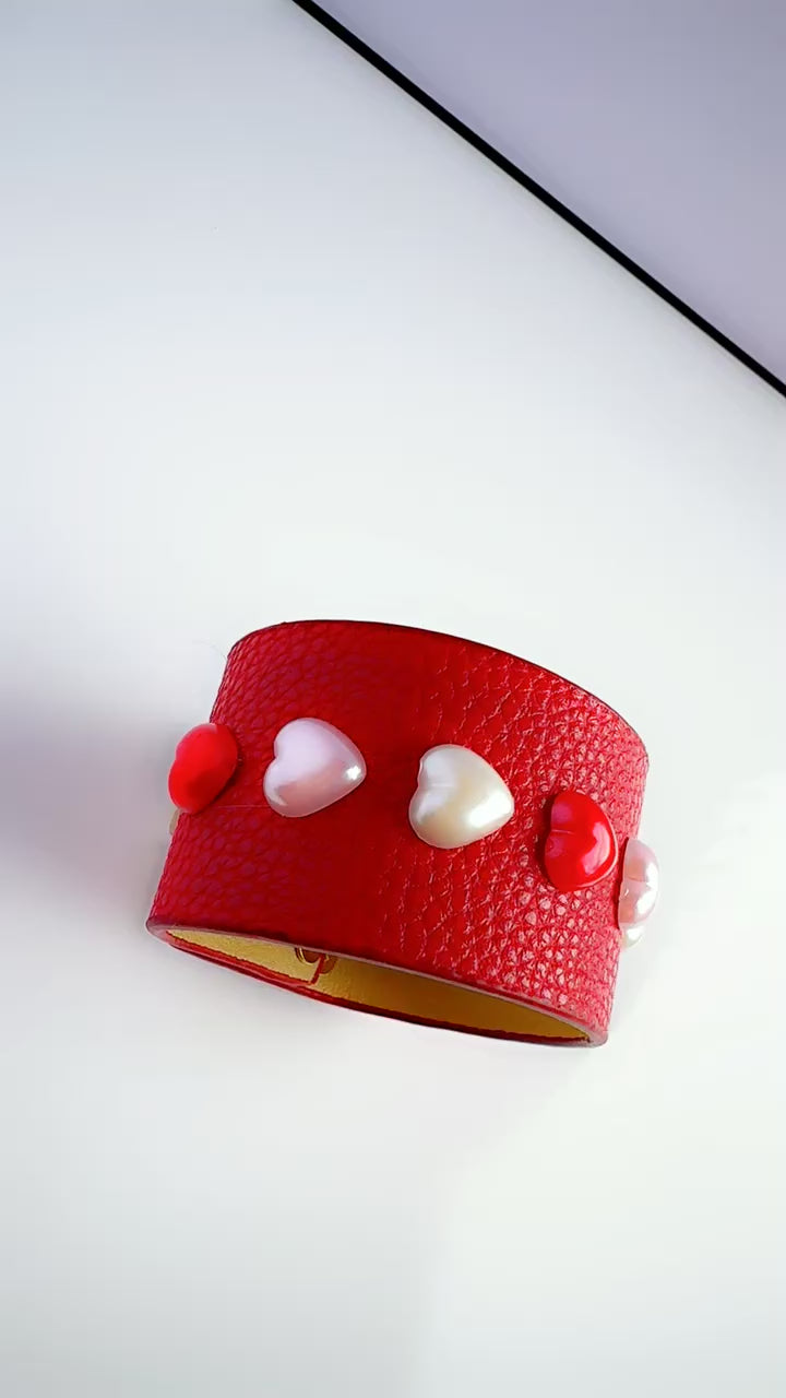 Handmade red leather cuff bracelet with gold clasp… Perfect for the holidays or Valentine’s Day! Perfect gift for that new girlfriend :-)