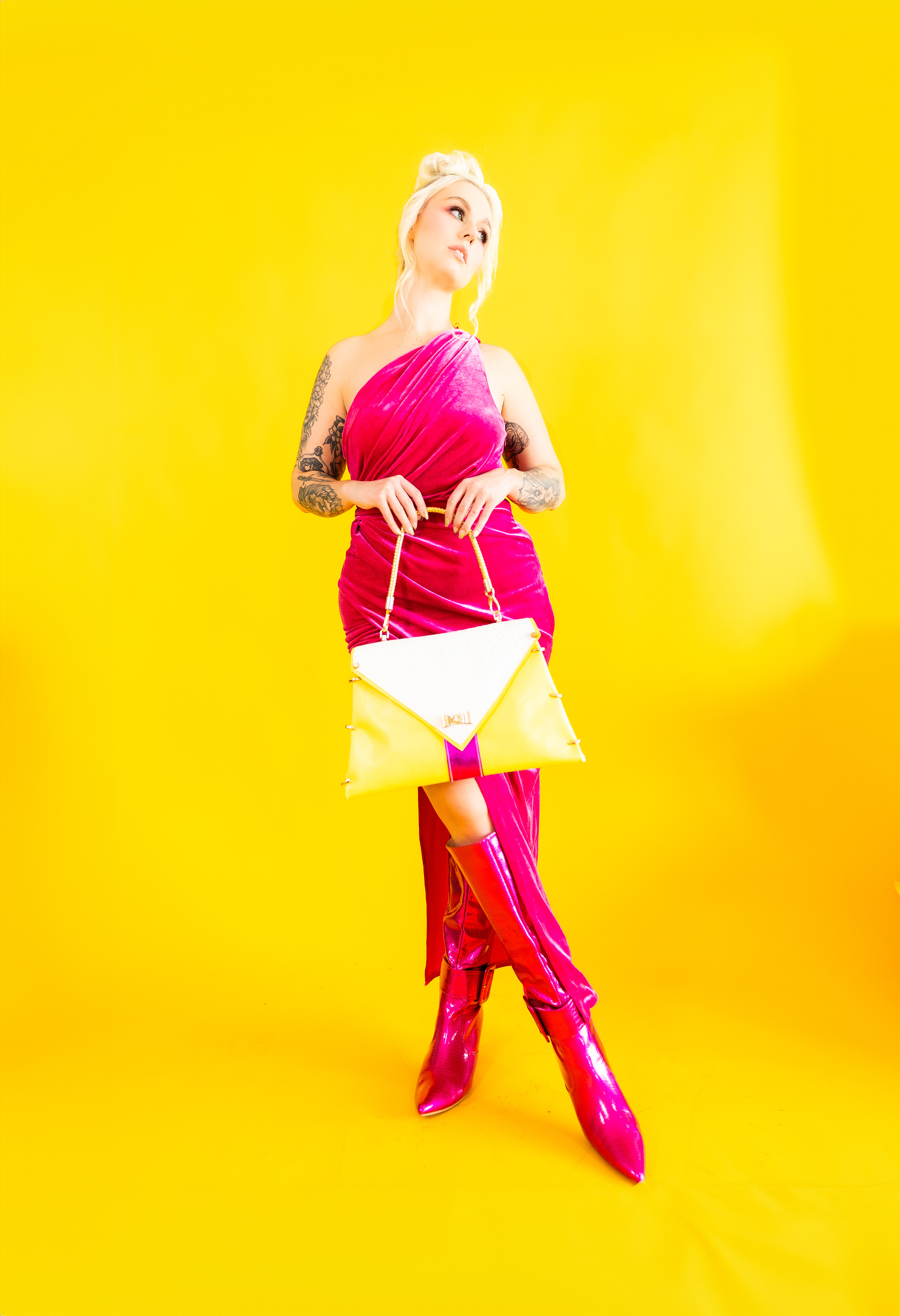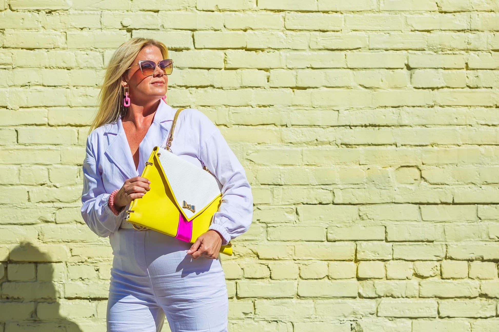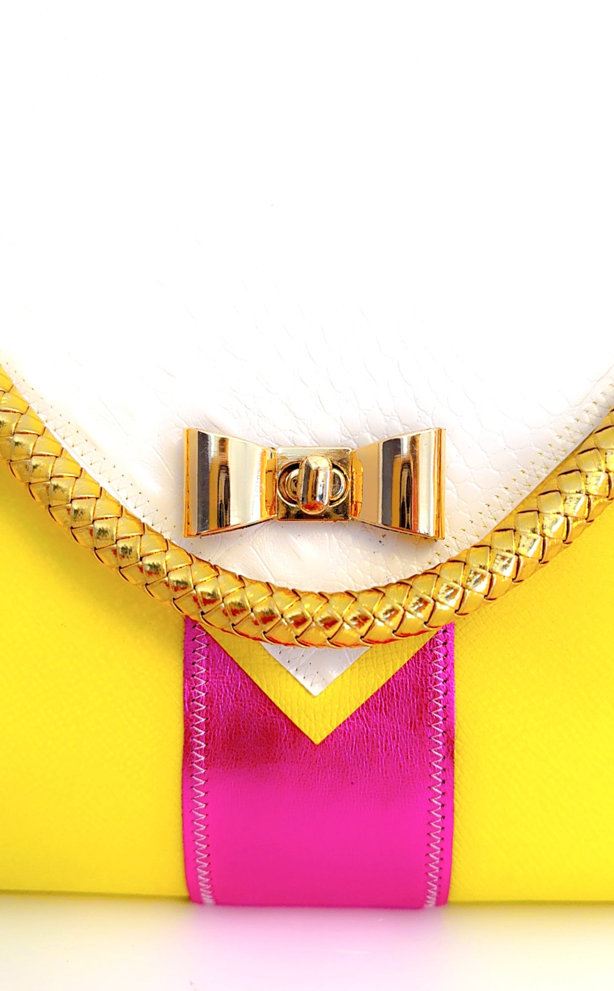 Italian Yellow Leather Handmade handbag with gold braided handle. Gold hardware with tan croc vinyl interior.