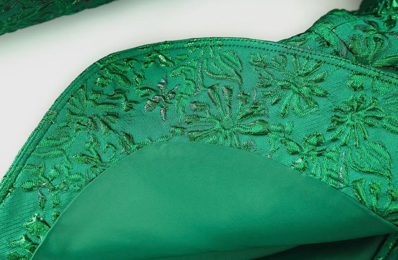Dive into the world of luxury with our Elegant Green Jacquard Suit Set. The blazer boasts refined jacquard embroidery, offering mesmerizing visual texture. Paired with wide-leg trousers, this set promises style and comfort.